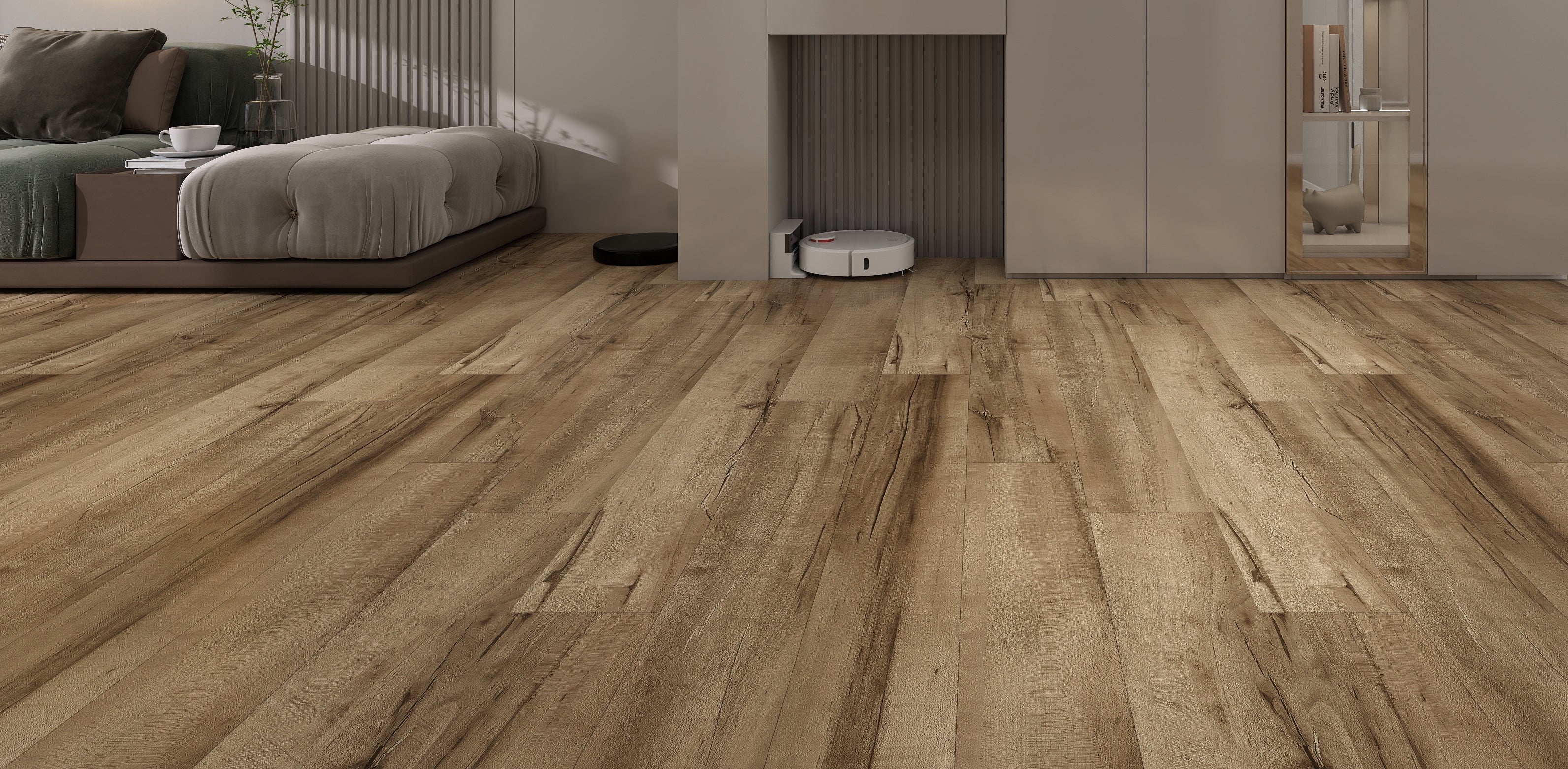 What sets this collection apart is the sheer presence of its 9-inch wide planks. By minimizing seams, Motif Grande creates a sweeping, continuous visual flow that makes any room feel larger and more open. Combined with our thickest 7mm core, it delivers the substantial sound and solid feel of real hardwood that standard floors simply cannot match.